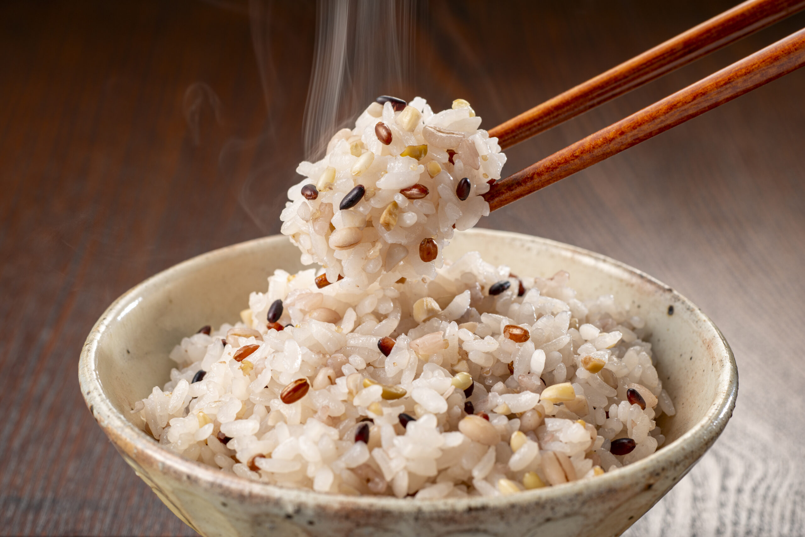 雑穀米は白米より食物繊維が多く、腸内環境の改善に役立ちます。