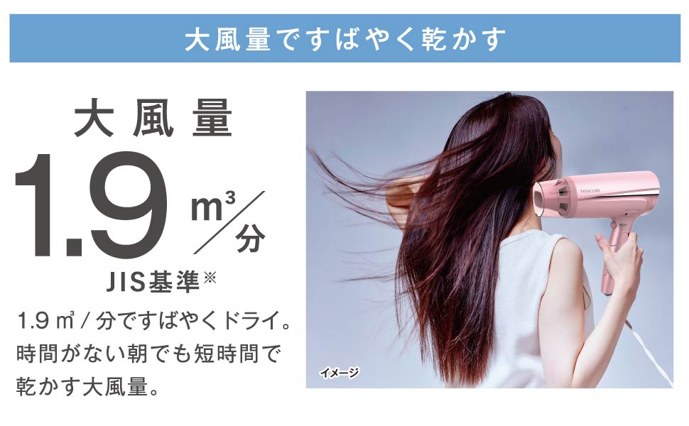 • POINT(勢いのある風で根本から乾かすことができる)